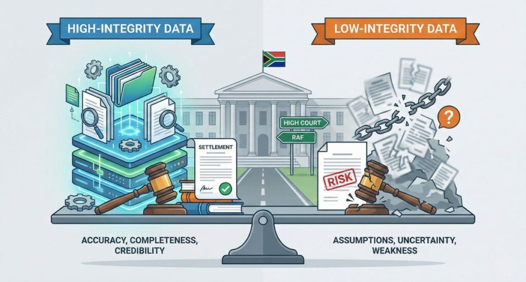 Litigation is ultimately a battle of evidence. Expert opinions, pleadings, medico-legal reports, and actuarial models all rely on the same underlying foundation: the quality of the data provided. In South African personal injury matters—especially those involving the Road Accident Fund or Gauteng Division of the High Court—the strength of a case often rises or falls on the accuracy, completeness, and credibility of the information attorneys place before their experts.